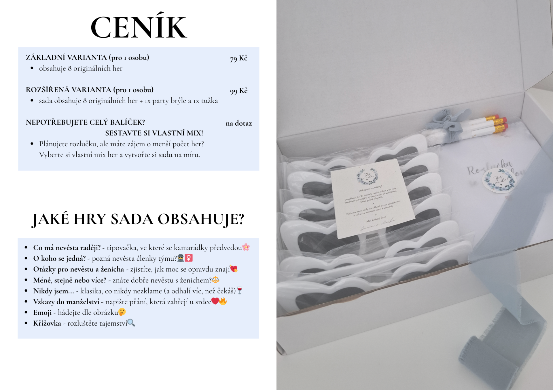 ❗️V rozšířené variantě jsou party brýle a tužka - dovoz.